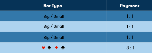 Người chơi có thể đặt cược vào Lớn & Nhỏ của cả hai (Rồng & Con hổ) các mặt.